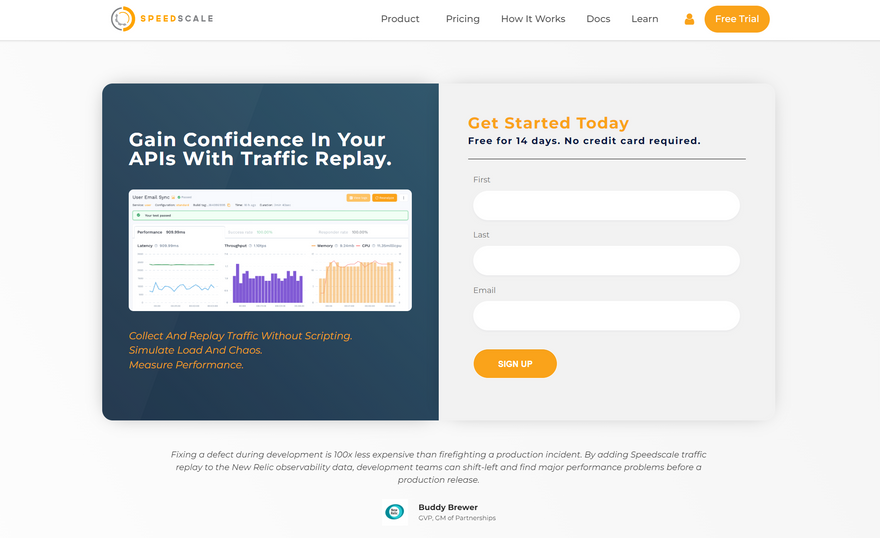 Step 1: Sign up for a Free Trial account on Speedscale. Speedscale offers a 14-day trial and also a free community edition for all types of users.
