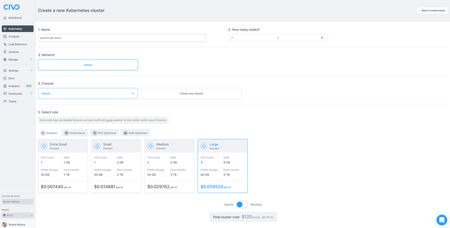 Step 3: Once you're on the configuration page, you can select the specs you wish to have for your cluster. For the sake of this tutorial, you can use the specs mentioned below.