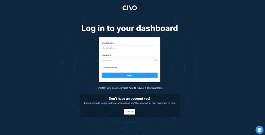 Step 1: Log in to the Civo dashboard with your credentials or you can simply sign up here if you don't have an account yet. Civo provides 250$ worth of free credits for 1 month to its new users so that they can explore the platform freely.