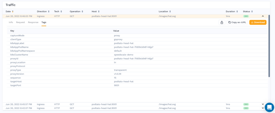 It's time to put some load now on the Podtato app to trace them on the Speedscale dashboard and analyze the traffic. Follow the steps below and we should be good to go.