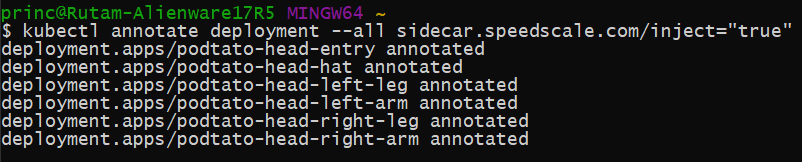 kubectl annotate deployment --all sidecar.speedscale.com/inject="true"