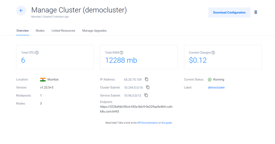 This completes the tutorial here. We have successfully deployed a cluster using Vultr Kubernetes Engine and also connected it from our local machine using the cluster configuration file.