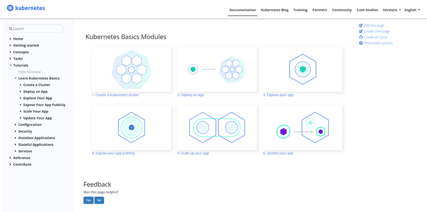 The official Kubernetes website provides some basic modules for the K8s beginners to learn using an interactive lab environment powered by Katacoda.
