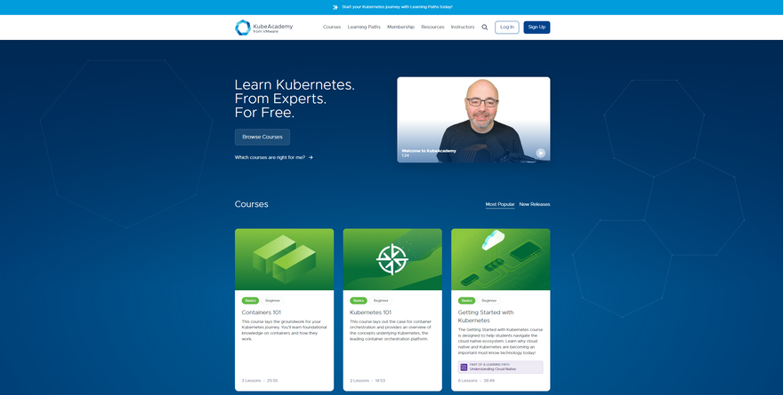 KubeAcademy provides 30 online courses with hands-on spanning over a duration of 39 hours tailored by 29 industry experts. You can even get a bunch of K8S Developer Resources from the VMware Tanzu Developer Centre or can even grab the Production Kubernetes e-Book written by 3 KubeAcademy instructors themselves.