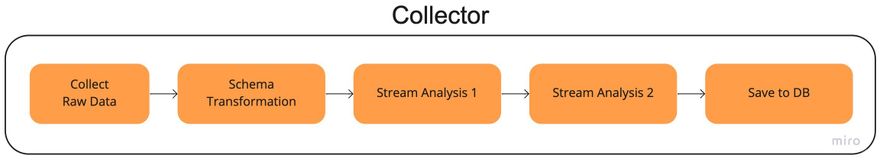 The “Collector” is a monolith, python-written application that basically collects and refines the data for analysis and visualization in batches and in a static timing every couple of hours.