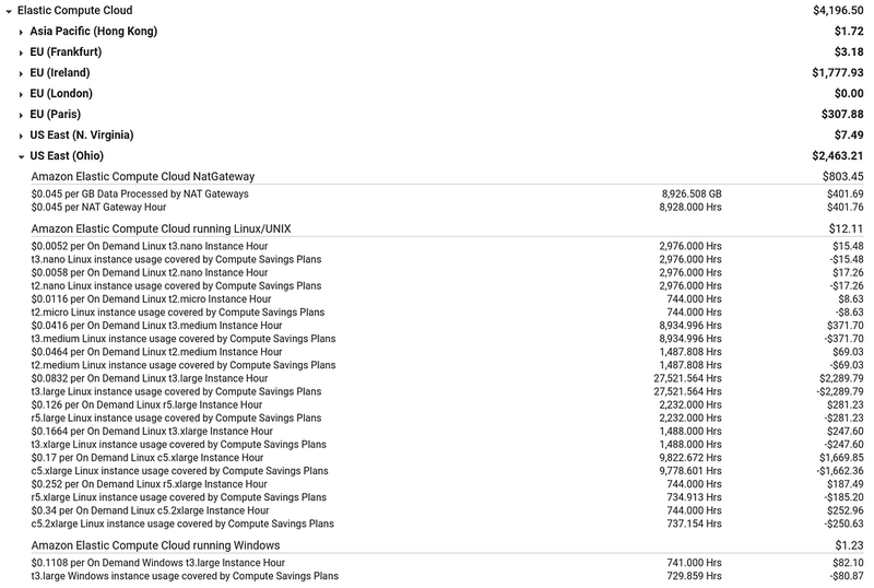 For example, a bill for EC2 might look like this: