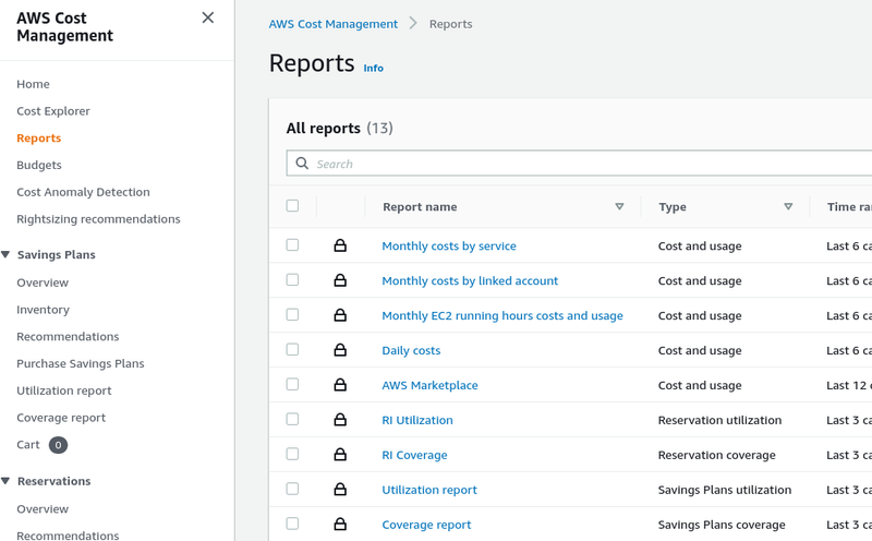 In the Reports there is a set of pre-built reports for the Cost Explorer: