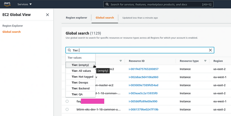 AWS Resource Groups Tag editor, and the EC2 Global View
