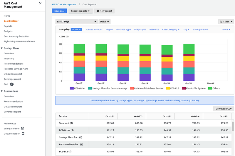 Now that we have a good idea of the overall cost structure, let’s see what Cost Explorer can tell us.