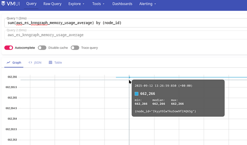 We don’t have a metric like “KNNGraphMemoryAvailable,” but with KNNGraphMemoryUsagePercentage and KNNGraphMemoryUsage, we can calculate it: