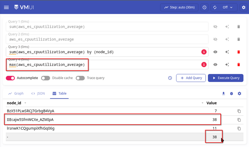 The query is simple — you can do max by (node_id), but I just made a general picture for the cluster: