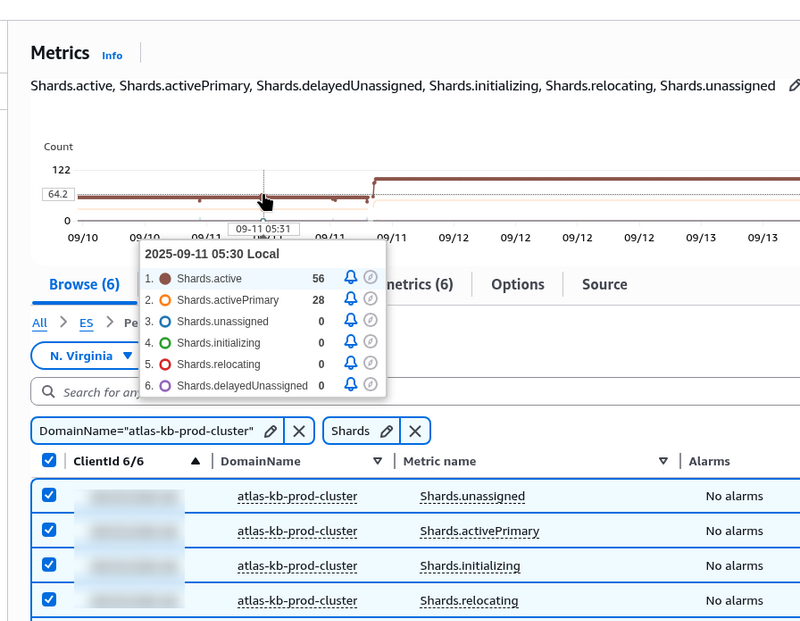 ShardReactivateCount: how often shards are transferred from cold/inactive states to active ones, which requires operating system resources, CPU, and memory; Well... maybe we should check if it has any significance for us at all.- But there is nothing in CloudWatch either — “did not match any metrics”