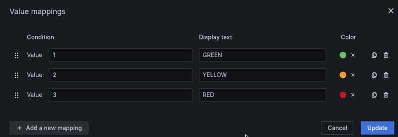 Set Color scheme and Thresholds, enable Show thresholds: