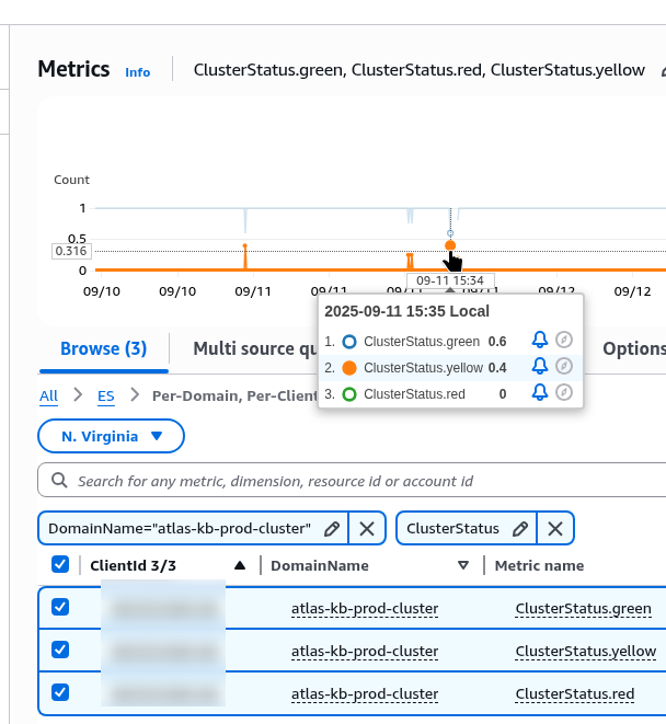 - Logs in CloudWatch Logs — we can collect them in VictoriaLogs and generate some metrics and alerts, but I didn’t see anything interesting in the logs during our production incident, see Monitoring OpenSearch logs with Amazon CloudWatch Logs.