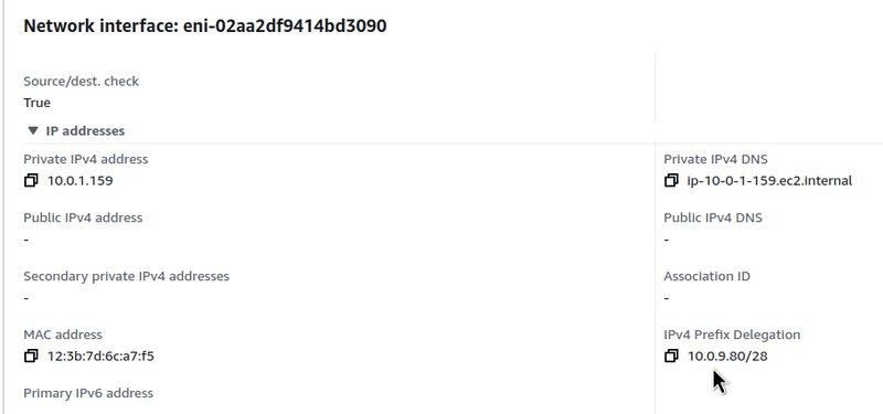 For example, we can create a new ENI and assign it a CIDR (Classless Inter-Domain Routing) prefix: