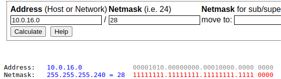 $ ipcalc 10.0.16.0/20 /28