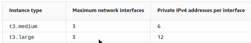 For example, t3.medium can have 3 interfaces, and each interface can have up to 6 IPs (see IP addresses per network interface per instance type):