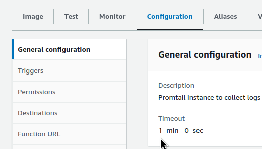 At first, I thought that Promtail couldn’t retrieve the log from S3 in the default timeout — 3 seconds, so I increased the function’s timeout: