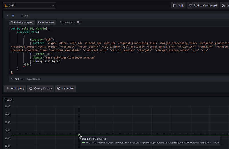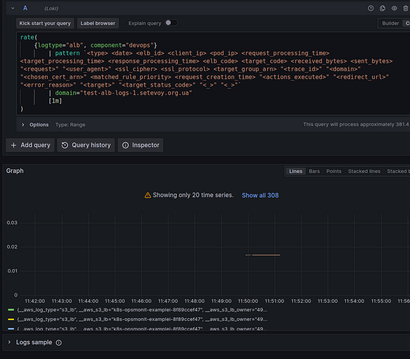 - create queries for Loki which will generate data from the AWS LoadBalancer log