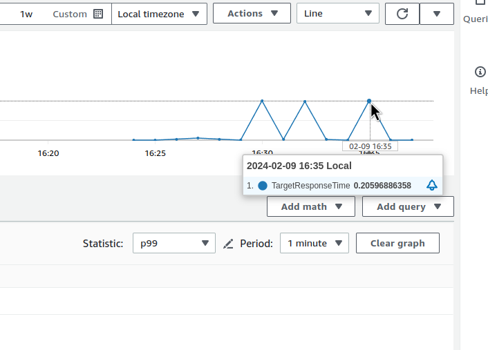 We will check with the target_processing_time, because we have the CloudWatch TargetResponseTime metric, which we can use to validate our results from the logs and our query.