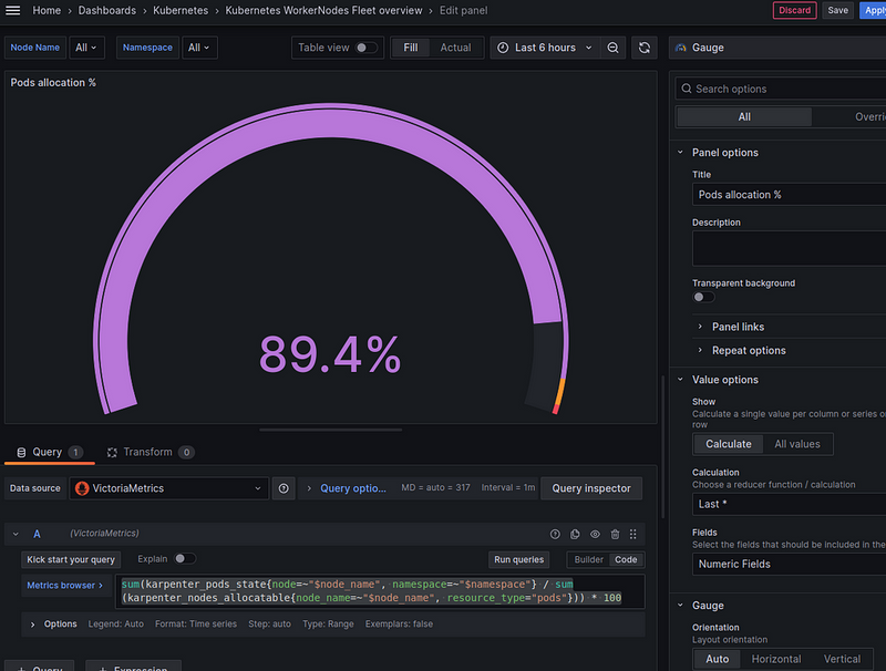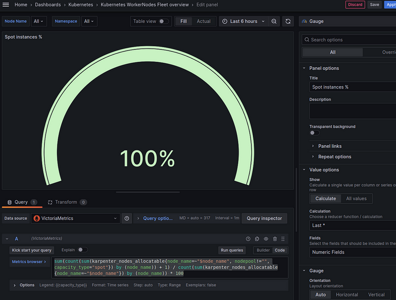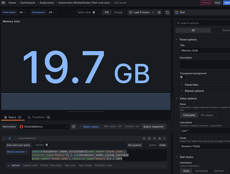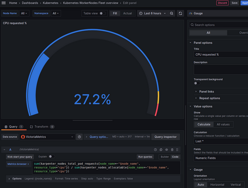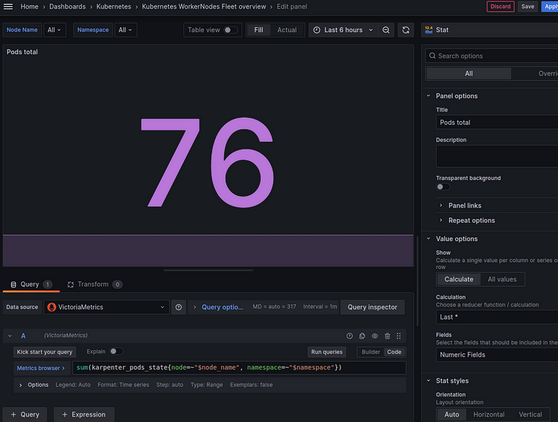 Karpenter — monitoring: its metrics and creating a Grafana dashboard for Kubernetes WorkerNodes with examples of PromQL queries