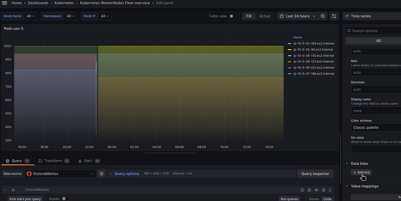 But in this case, the instance will return the results as "10.0.38.127:9100" - but we are using "ip-10-0-38-127.ec2.internal" everywhere. Also, we won't be able to add data links because the second panel uses the format the same format - ip-10-0-38-127.ec2.internal.