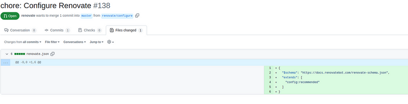 In this PR, we have a new file renovate.json with a minimal configuration: