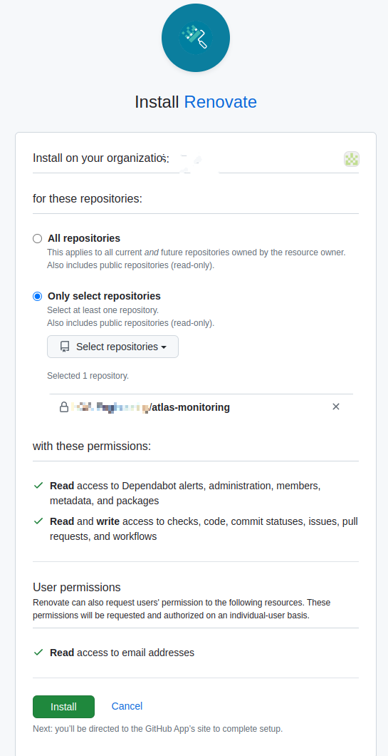 Go to the page Renovate GitHub App, click Install, choose which repositories to connect it to.