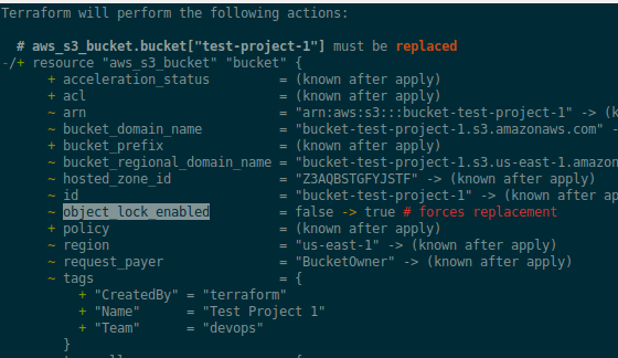 ~ bucket = "bucket-test-project-2" -> "bucket-another-test-project" # forces replacement