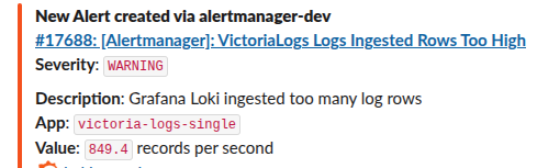 I didn’t have an alert for VictoriaLogs, but it has a similar metric — vl_rows_dropped_total.