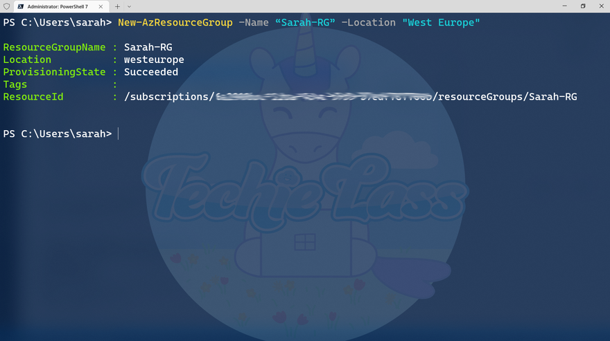 New-AzResourceGroup -Name “Sarah-RG” -Location "West Europe"