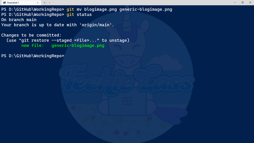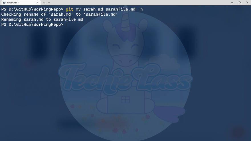 It's been an interesting day learning about the git mv command. I mostly do file renaming within the editor or even file explorer, but it's great to learn how it can be done with a command.