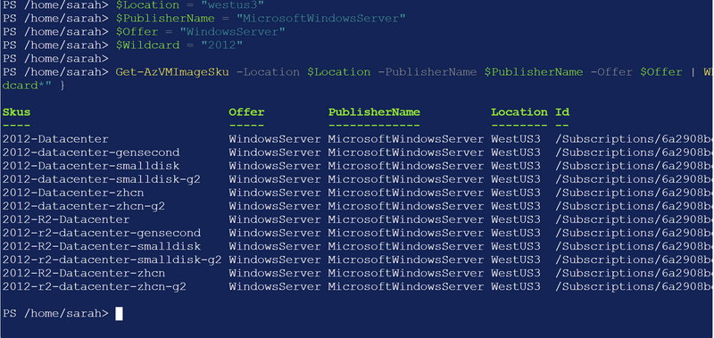 Once you have identified the SKU name, the next step is to find the available image versions. For example, to find all versions of the Windows Server 2012 R2 Datacenter SKU, you can use: