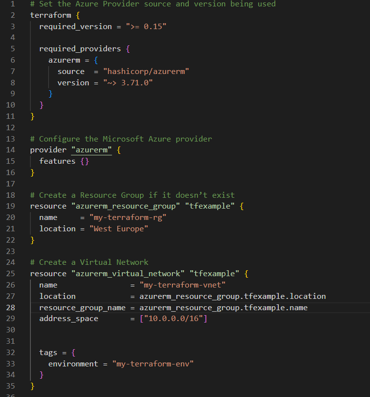 After I run the terraform fmt command, you can see the formatting of the file is much better!