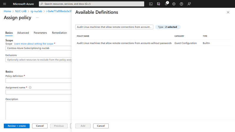 Azure Portal - Creating an Azure Policy - include Azure Arc machines