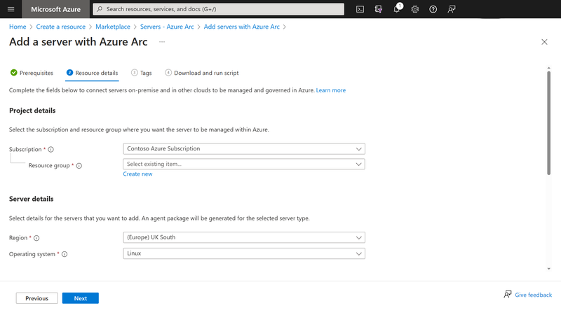 In the next step, you are asked to select some information. You are asked to select the subscription, resource group, operating system (OS), connectivity method and region. For this tutorial, ensure you select Linux as the OS and move to the next step.