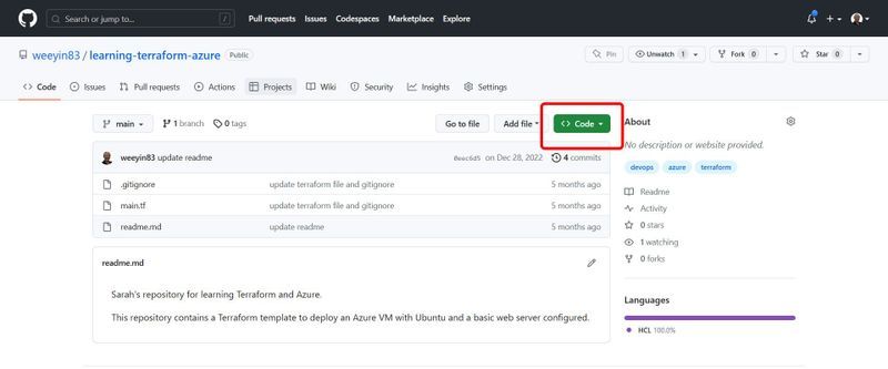 On the right hand side of your screen, click on Code