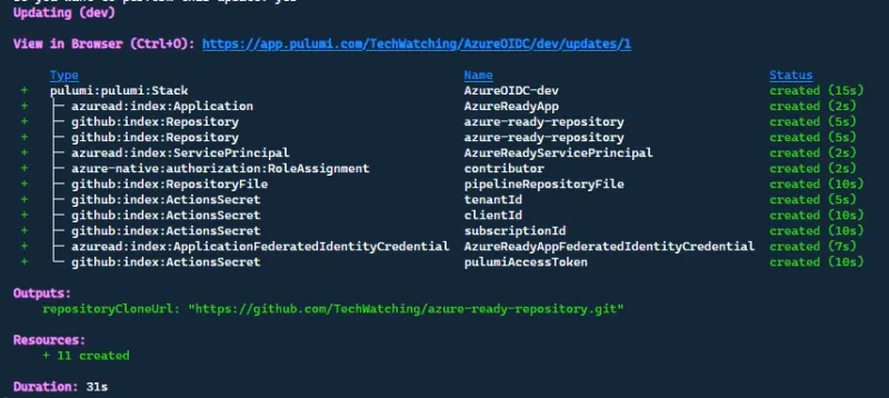 I think it would be interesting as well to put that code behind an API or a Web application using Pulumi Automation API to have a self-service solution to create Azure-Ready GitHub repository on the fly.