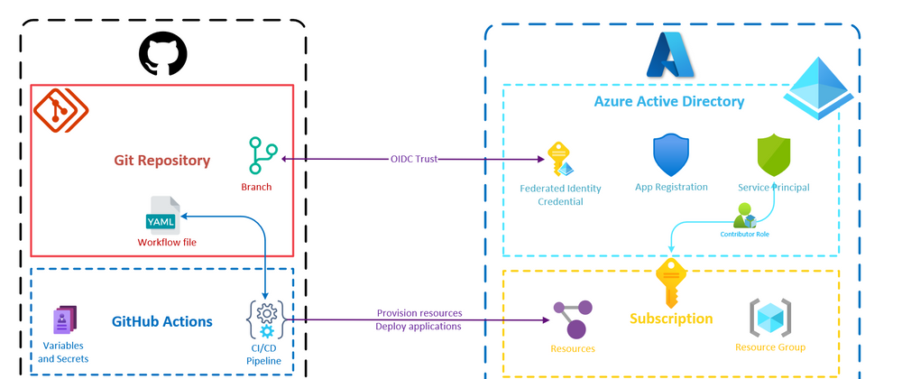 this mechanism relies on Open ID Connect and trust between Azure and GitHub