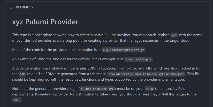 To manage SQL Server resources like users and roles, we can create a complete provider. We could create it from scratch of course or use this Pulumi GitHub repository that provides some boilerplate code to create a Pulumi provider. Usually, Pulumi providers are written in Go (like the Terraform providers by the way) and generate SDKs for all programming languages supported by Pulumi.