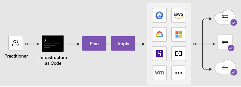 Providers define individual units of infrastructure, for example compute instances or private networks, as resources. You can compose resources from different providers into reusable Terraform configurations called modules, and manage them with a consistent language and workflow.