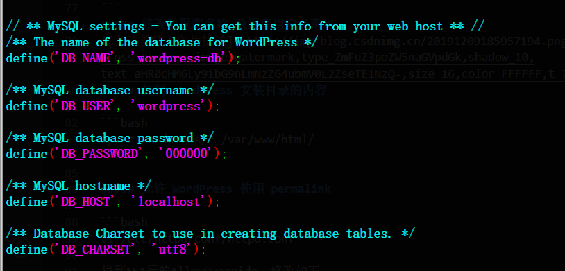 [root@server ~]# vi wordpress/wp-config.php