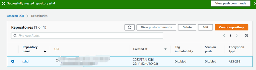 docker push aws_account_id.dkr.ecr.region.amazonaws.com/sshd:latest