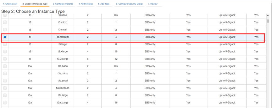 2.Choose Instance Type(T3.medium)