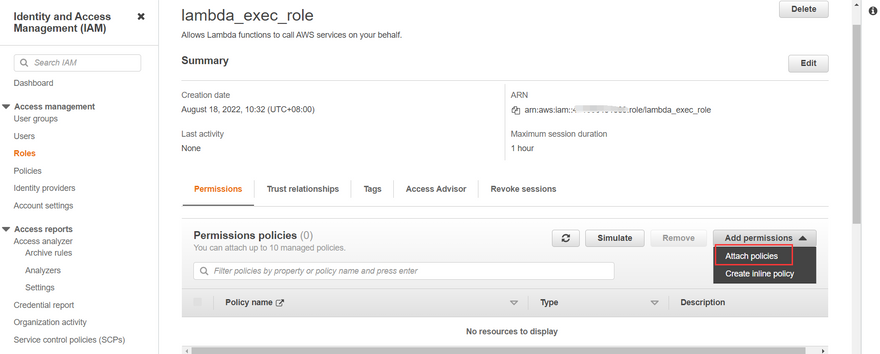1.1.2.2 attach 2 policy to the role(lambda and event full access)